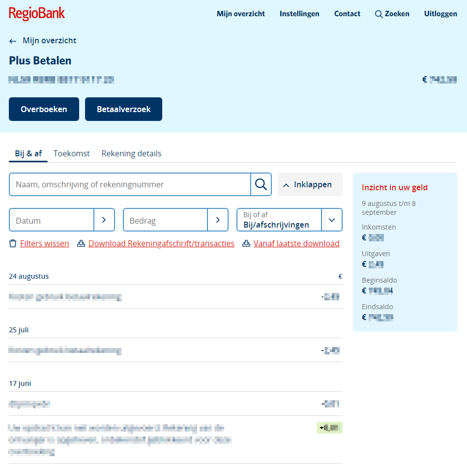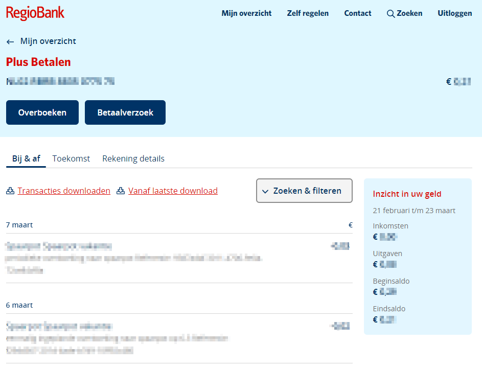 Je rekeningoverzicht in Mijn RegioBank